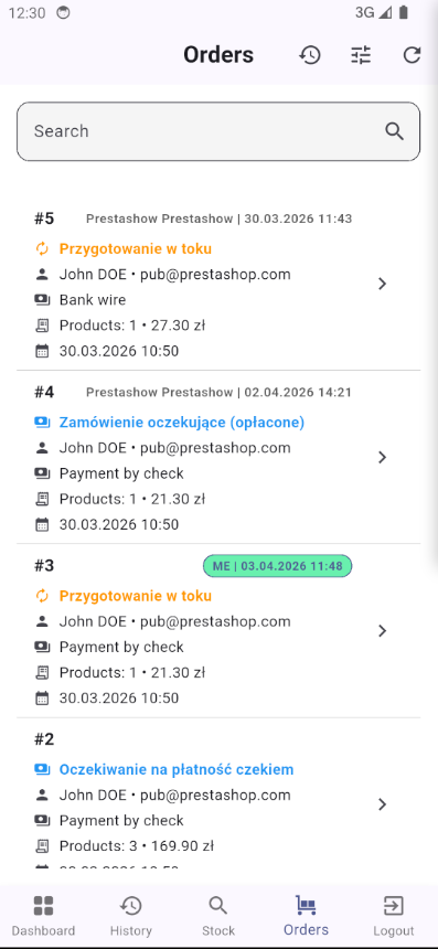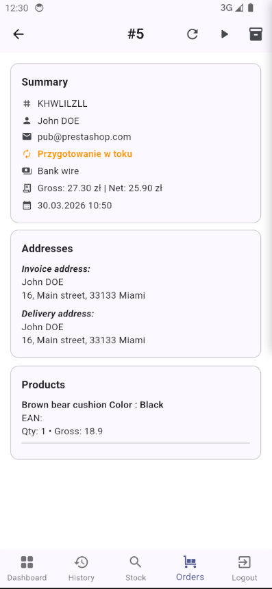 Mobilna aplikacja magazynowa dla zespołów PrestaShop, umożliwiająca szybsze kompletowanie zamówień, kontrolę realizacji i zarządzanie dostępem pracowników.