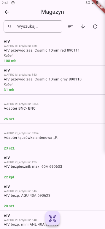 - Operacje magazynowe oparte na kodach kreskowych